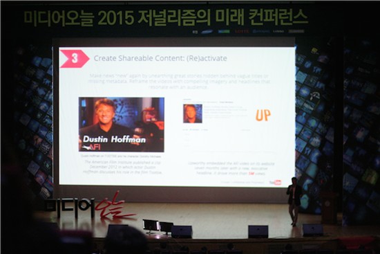 | <단비뉴스>는 지난 26~27일 건국대 새천년관 대공연장에서 열린 ‘2015 저널리즘의 미래’ 컨퍼런스에 참가했다. 컨퍼런스에서는 34명의 각 분야 스페셜리스트들이 연사로 참여해 진행 중인 미디어 변화현상에 대해 현장중심의 사례들을 발표한, 미디어산업의 오늘과 내일을 조망하는 귀한 자리였다. <단비뉴스>는 전체 강연 중 저널리즘의 미래를 가늠할 ‘놓쳐서는 안 될’ 강연들을 엄선해 싣는다. |