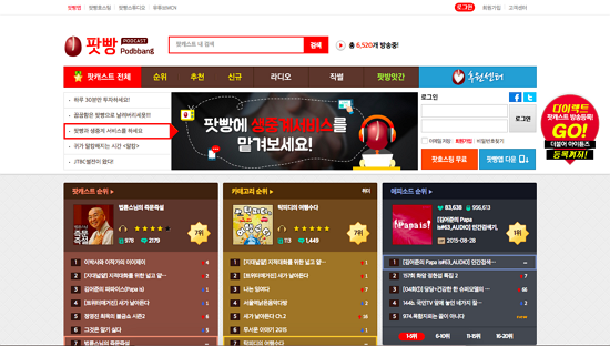 팟빵은 올해 7월 말로 6,359개 팟캐스트를 제공하며 국내 시장 70%를 점유하는 국내 최대 팟캐스트 플랫폼회사다. 김동희 팟빵 사업실장은 “2011년 말~2012년 초 나꼼수 열풍 때 효과적으로 시장에 진입할 수 있었다”고 말했다. 당시 팟빵은 웹사이트를 통해 팟캐스트 제작자와 청취자를 연결시켜주는 장을 만들며 사업을 시작했다. 팟캐스트들의 랭킹을 매기고 각 팟캐스트 페이지마다 게시판, 댓글 기능을 마련하니 청취자들이 찾아왔다. 이후 꾸준히 팟캐스트 산업에 주력해 팟캐스트를 직접 송출할 뿐 아니라 공공기관, 기업 등의 팟캐스트 제작과 더불어 영상, 웹툰 등의 콘텐츠도 제작하는 종합 팟캐스트 플랫폼으로 성장했다.