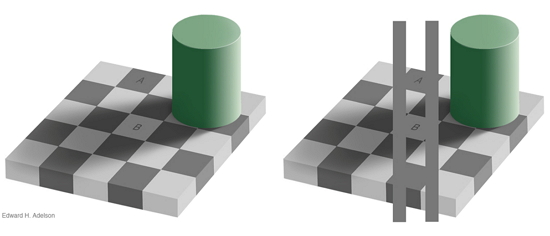 경탄스러울 정도로 잘 디자인된 것은 우리 마음만이 아니다. 착시는 조명의 밝기와 관계없이 본래 사물의 밝기를 잘 파악하기 위해 생기는 현상이다. 하얀 눈이 조명이 어두운 곳에서도 하얗게 느껴지는 이유도 착시 때문이다. 카메라가 빛의 양에 따라 사물을 왜곡하는 것과는 현저히 다른 훌륭한 시각계의 능력이다.