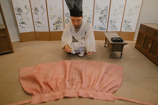 유배지에서 정약용은 세상과 절연했지만, 가족과는 그럴 수 없었다. 홍씨 부인은 남편이 전남 강진으로 귀양간 지 10년째 되던 해에 자기가 시집올 때 입었던 치마를 싸서 남편에게 보냈다. 이 치마를 ‘하피’(霞陂)라고 부르는데, ‘붉은 노을빛 치마’라는 뜻이다. 30년이 지나 색이 바랜 붉은 치마에 남편에 대한 그리움을 담아 보낸 것이다. 김 관장은 “귀향 간 남편이 언제 죽을지 모르는 처지에 있으니 영결을 고한 것”이라 해석했다.