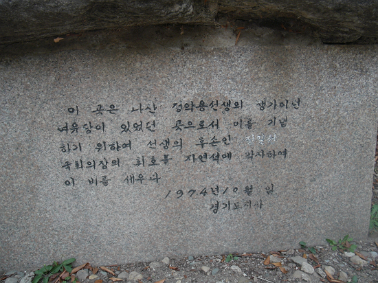 다산유적지를 조성한 것도 군사쿠데타로 정권을 잡은 박정희 대통령 때였다. 정일권 국회의장은 여러 명이던 소유주를 정리해 여유당을 복원하고, 넓은 기와집을 실학박물관으로 꾸며 다산유적지를 조성했다. 그러나 1974년 경기도지사가 이를 기려 놓은 비석에는 정 전 국회의장의 이름 석 자가 하얗게 쪼아져 있다. 민주화 운동 시기에 청년들이 그의 이름을 쪼아 없애고, 경기도지사는 다시 글씨를 새기고, 청년들은 다시 쪼아버린 흔적이다. 한평생 백성을 위하고 민생을 살리려 노력해온 선생의 삶이 국민을 탄압한 군사정권에서 조명받은 사실은 역사의 아이러니다.