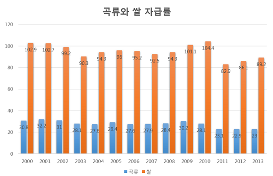 농촌의 쇠락은 쌀 자급률 붕괴로 이어지고 있다. 오랫동안 100%를 자랑하던 국내 쌀 자급률은 2011년 83%로 뚝 떨어졌다. 1994년 우루과이라운드 결과 가공용 쌀이 수입된 데 이어 2005년부터 밥쌀용 쌀이 들어왔는데, 한동안 냉대 받던 수입쌀이 2011년 양곡관리법 개정 이후 ‘완판’을 기록했다. 국산과 수입쌀을 섞어 파는 것이 허용되면서 수입산 비중이 90% 이르는 혼합쌀이 친숙한 상표를 달고 우리쌀인 것처럼 팔린 탓이다. 문제가 불거지자 정부는 지난 7월 7일 양곡관리법을 개정해 수입쌀과 혼합쌀 혼용을 다시 금지했다.