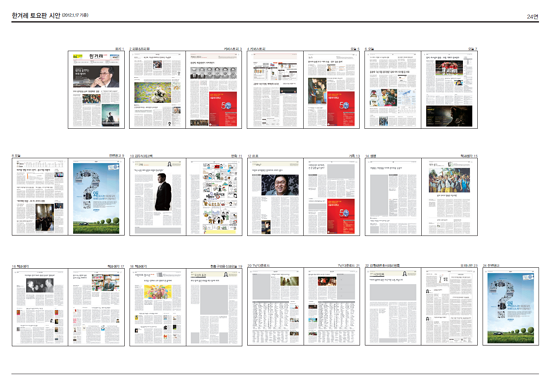 “토요판. 기본개념 1. 당일 스트레이트 뉴스를 포함하면서도 기존의 토요일 신문을 대체하는 신개념 주말페이퍼. 한국언론 시장의 새상품으로서 도발적이면서도 깊이있는 기사로 새롭게 트렌드를 이끌어가야 함. 2. 캐치프레이즈를 ‘스토리가 있는 주말’로 가져가야 한다고 봄. 긴 호흡의 내러티브 기사를 컨셉으로 내세우는 차별화 전략. 과감하게 피처기사를 전면에 내세우고 스트레이트는 브리핑 형태로 압축.(하략)”