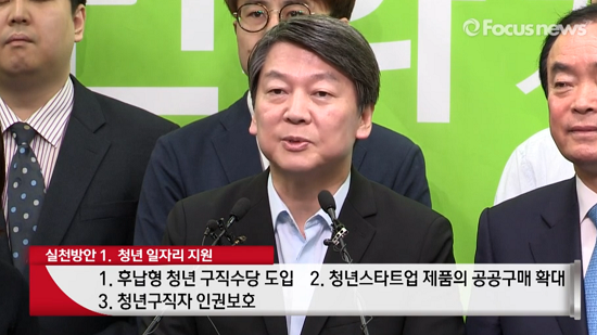 A. 지금의 청년세대는 최악의 청년실업 속에서 엄청난 고등교육비 부담과 주거비의 부담과 빚을 짊어지고 사회에 진출하고 있다. 학자금 대출을 비롯한 경제적 부담은 결혼과 출산시기를 늦추고 가계부채에도 많은 영향을 주고 있다. 청년이 청년문제를 해결할 수 있는 기회가 너무나 적다. 우선적으로 취업까지의 우리나라 평균 소요기간은 8.3개월이다. 취업준비 기간 동안 각종 스펙쌓기와 생활·주거비로 인해 경제적으로 부담을 짊어지고 있다. 그러나 청년을 위한 퍼주기식 수당지급이나, 겉핥기식 프로그램 양성으로는 원천적인 해결이 어렵다. 국민의당은 실용적인 청년문제 해결이 필요하다고 생각한다. 청년스타트업 기업제품 우선구매, 청년구직자의 인권보호 등으로 청년들의 출발선을 공정하게 개선하는 방법과 대학입학금 폐지, 국가장학금의 불공정한 제도 개선, 학자금 경감 등으로 사회의 불합리한 것들을 개선해서 공정한 출발, 노력한 만큼 성공하는 사회를 만들어가는 것이다.