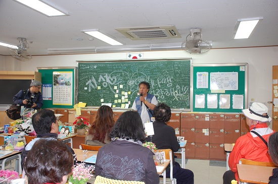 8시 30분쯤 버스가 단원고 정문 앞에 도착했다. 답사여행은 시작부터 순탄치 않았다. 학교의 명령이라며 경비원이 답사객의 출입을 막았다. ‘416기억교실’ 설명을 맡은 416기억저장소 김종천 사무국장과 학교 사이 실랑이 끝에 교실을 들여다볼 수 있었다.