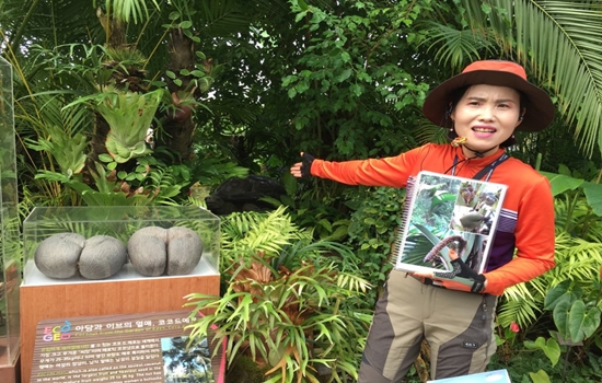 "여러분, 자연이 주는 것이 얼마나 소중한지 알겠죠? 제가 생태체험 온실에서 해설을 길게 하는 이유는 여러분이 자연의 소중함을 알았으면 하는 마음에서였어요. 기후 온난화가 식물 생존의 변화 속도를 초월하고 있어요. 흔히 보는 소나무도 멸종 위기에 처해 있지요. 지구 온난화에 대해 젊은 친구들이 조금 더 관심을 갖고, 자연과 더불어 살았던 선조들의 지혜를 본받았으면 좋겠어요."