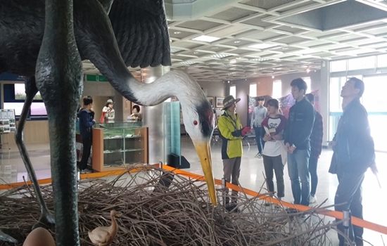 노 해설사는 로비 중심에 있는 커다란 흑두루미 조형물 앞에서 흑두루미의 진한 부부애를 설명했다. 그는 "얼마 전에 다 떠났지만, 며칠 동안 부부로 보이는 흑두루미 두 마리가 머문 적이 있다"며 "우리가 주의 깊게 관찰했더니 한 마리가 부상을 당해서 나머지 한 마리가 계속 기다려준 것이었다"고 말했다.