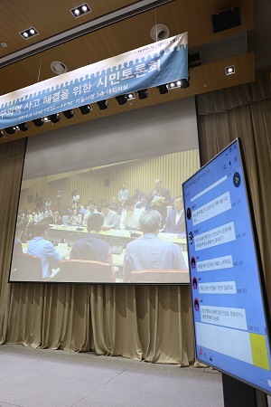 토론이 진행되는 대회의실 한 쪽 모니터에서는 토론회를 실시간으로 지켜보며 자신의 의견을 이야기하는 시민들의 메신저들이 실시간으로 표시됐다. 시민들은 우리나라에 안전 전문가가 없는 점, 지하철 정시 운행을 너무 강조하는 분위기, 일하는 사람은 한 명인데 감독하는 사람은 열 명인 작업 환경 등을 지적했다.