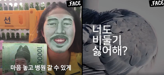<닷페이스만>의 두 번째 원칙은 ‘시청자와 같은 언어 쓰기’다. <닷페이스>는 시청자가 <페이스북>에서 쓰는 언어와 놀이 방식을 관찰해 뉴스에 활용한다. 국회 앞에서 최저임금 1만 원 인상 시위를 하는 알바노조의 소식을 전하며 ‘faceswap 챌린지’ 기능을 활용했다. faceswap 챌린지는 사진을 찍는 두 사람의 얼굴을 바꿔주는 기능으로 젊은 층에 인기 있는 앱이다. <닷페이스>는 앱을 활용해 1만 원 짜리 지폐의 세종대왕 얼굴과 알바노조 농성자들의 얼굴을 바꿔 영상 뉴스를 만들었다. 조 대표는 “사람들이 노는 방식을 그대로를 가져와서 콘텐츠를 만들어야지, ENG 카메라로 찍으면 안 된다”며 “모바일 콘텐츠를 제작하는 사람은 모바일로 놀고 찍는 일에 익숙해야 한다”고 말했다.