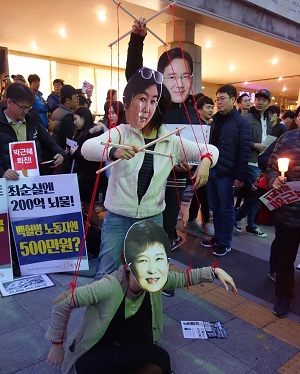 최 씨는 청와대와 대통령의 권력을 내세워 인형극 놀이하듯 권력을 휘둘렀다. 국정 개입 외에도 직접 법인 재단을 세우고 청와대의 입김을 빌려 기업들에 거액을 뜯어냈다. 재단 이름으로 모은 거금을 독일 자신의 유령 회사로 보낸 돈세탁 정황도 포착됐다. 공교육 인사들에게 회유와 협박을 서슴지 않으며 딸의 대입과 승마 선수 생활에 걸림돌을 말끔히 걷어냈다. 제집 드나들 듯 정문을 통해 청와대로 출근했다는 최 씨의 행적은 연일 생각지 못한 곳에서 문제로 불거진다.