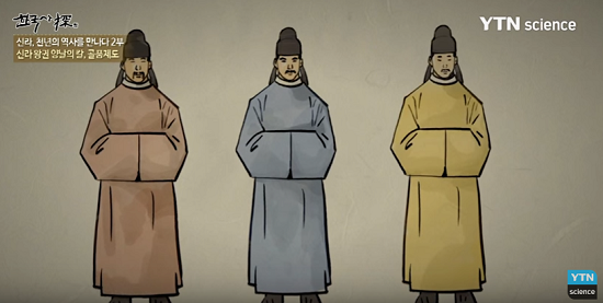 골품제는 신라의 신분제로 왕족인 성골, 진골과 1~6두품으로 구성된다. 법흥왕 때 정비된 17등 관등제도는 골품제도와 관련 있다. 진골은 최고관등인 이벌찬(伊伐飡)까지 승진할 수가 있으나, 6두품은 제6관등인 아찬(阿飡)까지, 5두품은 제10관등인 대나마(大奈麻)까지, 4두품은 제12관등인 대사(大舍)까지 올라간다. 제5관등인 대아찬 이상, 제9관등인 급벌찬 이상, 제11관등인 나마 이상, 그리고 제17관등인 조위(造位) 이상이 각기 자·비·청·황색의 옷을 입었다. 관등의 계급적인 구분이 네 가지 복색의 구분과 일치한다. 정확한 계급은 알 수 없겠지만, 옷 색깔에 신분과 지위가 드러난다.