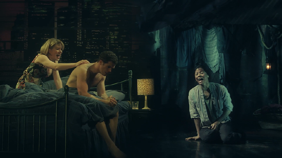 제한된 시간 속에서 뮤지컬의 서사는 단조롭다. 인물들의 감정선 또한 맥락에 맞지 않는다고 느껴지기도 한다. 이를테면, 미군의 손에 가족들이 희생당한 킴이 미군인 크리스와 단번에 사랑에 빠지게 되는 부분에서 과연 그 둘이 서로에게 반하고 하룻밤 만에 사랑에 빠지는 건 가능할까 하는 의문이다. 그러나 두 사람이 눈을 맞추고 “You are sunlight and I, moon(그대는 태양 나는 달)" 하며 함께 부르는 ‘Sun and Moon'(해와 달)같은 뮤지컬 넘버가 흘러나오는 순간, 아주 다른 세상에서 온 두 사람의 사랑 또한 이해된다. 때로는 감미롭게, 때로는 격정적으로 휘몰아치는 음악은 공연 내내 감정선을 연결해 준다. 현란한 무대볼거리와 더불어 적재적소에서 인물의 감정을 설명해주는 세련된 뮤지컬 넘버야말로 <미스 사이공>을 단순한 신파극이 아니게 한다.