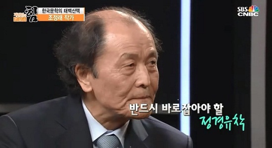 태백산맥, 아리랑, 한강 등 현대사를 관통하는 대하소설을 쓴 조정래(74) 작가가 30일 SBSCNBC 방송 <제정임의 문답쇼, 힘>에 출연해 대통령 탄핵 이후의 사회적 과제를 제시했다. 그는 “정경유착 행위로 대통령이 탄핵당한 지금이 이 문제를 해결할 수 있는 적기”라며 “정치권과 사법부가 (집행유예나 사면복권 등으로) 국민에게 사기 치지 말아야 한다”고 목소리를 높였다.