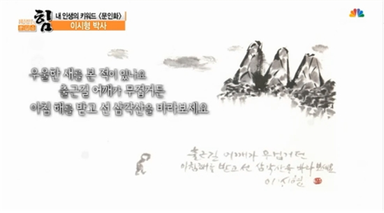 요즘 문인화를 그리는 취미에 푹 빠져 있다고 밝힌 이 박사는 어릴 때 가장 못 했던 미술을 뒤늦게 시작한 계기를 털어놓았다. 오랫동안 정신과 상담을 했던 사람이 노숙자가 되어 있는 모습을 봤는데, 마음이 찢어질 듯 아팠다는 것이다. 그는 “실패한 사람들의 아픈 마음을 과연 의사로서, 상담가로서 내가 얼마나 공감하는지 양심이 찔렸다”며 “공감하기 위해 가장 못 하는 미술에 도전했다”고 말했다. 사군자(매화·난초·국화·대나무)가 제대로 그려지지 않아 좌절했지만 자주 가는 산을 소박하게 그렸을 때 ‘잘 그린 그림은 아니나 (생각이 담긴) 좋은 그림’이라는 인정을 받았다고 한다. 이 박사는 막막한 장래에 대한 불안과 현실의 갖가지 아픔에 시달리는 청년들에게 “그래도 부딪쳐 가며 열심히 살아야 한다는 이야기를 꼭 해주고 싶다”고 말했다.
