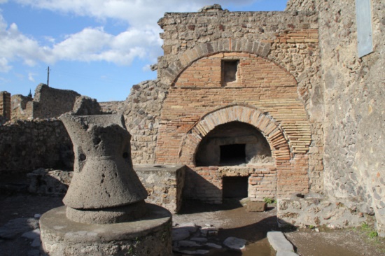 로마시대 방앗간과 빵집은 하나로 합쳐져 있었다. 이런 제과점을 피스트리움(Pistrium)이라고 불렀다. 밀가루 반죽을 의미하는 ‘Pist(Pasta)’에 장소를 나타내는 접미사 ‘-um’의 합성어다. 로마 시민들은 집이 아닌 전문 제과점 피스트리움에서 만든 빵을 먹었다. 폼페이에는 이곳 말고도 세 군데 더 피스트리움이 남아 있다. 4세기 말 로마 제국의 최대 도시 로마에는 무려 274개의 피스트리움에서 나귀가 방아를 돌렸고, 제빵사가 화덕에서 빵을 구워댔다. 요즘 한국 도심지에 많은 체인 제과점과 비슷하다. 피스트리움에서 나귀가 고역(苦役)으로부터 해방된 것은 395년 이후다. 수력을 활용한 물레방아를 발명한 덕분이다.