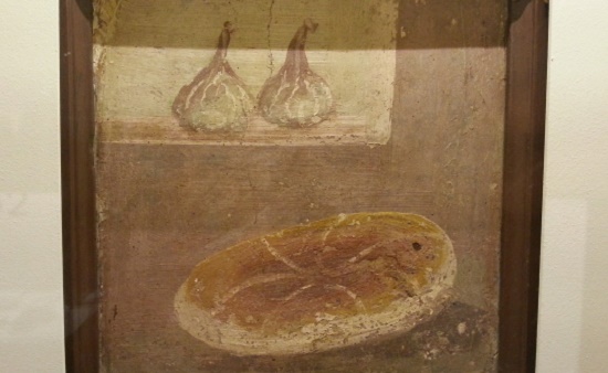 당시 소개된 로마의 빵 그림으로 시선을 옮긴다. 무화과 과일이 2개 걸려 있고, 그 아래 노란 빵이 먹음직스럽다. 효모균을 잘 썼나. 적당히 부풀어 올라 입맛을 당기게 하는 빵을 보면 군침이 절로 돈다. 요즘 동네 제과점에서 보는 빵과, 크기와 모양이 크게 다르지 않다. 둘레는 흰색이고 노릇노릇 구워진 빵은 가운데로 갈수록 짙은 갈색을 띤다. 7개의 줄이 있으니 7조각을 내 먹을 수 있는 셈이다. 폼페이에서 출토된 이 프레스코 속 빵의 생김새를 에르콜라노에서 발굴된 숯덩이 빵과 비교해 보자. 그대로 겹쳐진다. 로마인들의 주식 빵과 식습관의 풍습을 가감 없이 전해주는 유물이다. 로마에 독재정을 추구했던 카이사르에 이어 로마를 황제정으로 바꾼 옥타비아누스(BC 63년~AD 14년)는 말년에 식사 한 끼로 이런 빵 한 조각만 먹고 버텼다고 한다. 다이어트라기보다 위장병 탓이라고 하는데, 그런 소식(小食) 덕분인지 당시로는 장수인 78세까지 살았다.