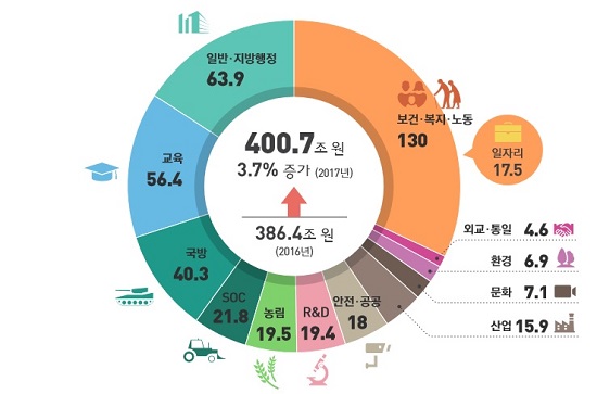 지난해 전체 국가 예산은 386조4천억 원이었다. 농림 분야 재원은 19조3천억 원으로 약 4.9% 비중을 차지했다. 2015년과 비교해 전체 예산이 3% 증가했으나 농림 분야는 0.1% 상승에 그쳤다. 올해도 마찬가지다. 처음으로 전체 예산안이 400조 원을 돌파하며 전년 대비 증가율 역시 3.7%로 커졌지만 농림 분야는 19조5천억 원으로 책정돼 0.6% 증가에 머물렀다. 1995년 농업예산 비중이 15.7%였던 것과 달리 현저하게 낮아진 수치다. 예산 비중 감소는 국가가 농업을 어떻게 바라보는지 알 수 있는 지표다.