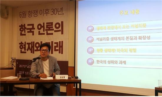 마지막 발제자인 김성해 대구대 미디어커뮤니케이션학과 교수는 ‘지속가능한 저널리즘 생태계의 모색’에 관한 주제로 이야기했다. 그는 ‘생태계’ 개념을 ‘언론’에 적용했다.