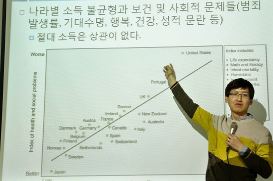 “우리가 잘 살건, 못 살건, 좀 더 나은, 건강하고 안전한 사회에서 살고 싶다면 무엇보다 그 나라의 전체적인 부의 총량을 늘리는 게 아니라 경제적인 불평등을 줄이는 데 루트를 두고 나아가는 것이 중요합니다.”