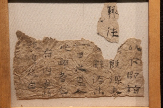 장소를 실크로드의 출발 지점이자 중국 문명의 젖줄 황허(黃河)의 상류 중심도시인 중국 간쑤(甘肅)성의 성도 란저우(蘭州)로 옮겨 보자. 란저우 시내 간쑤성 박물관에는 서한(西漢·BC 206~AD 8) 시대 종이와 먹이 전시돼 있다. 둔황(敦煌)에서 발굴된 이 종이 말고도 몇 군데 발굴을 통해 BC 2세기 말에서 늦어도 BC 1세기 초 종이가 발명됐을 것이라는 게 정설이다.