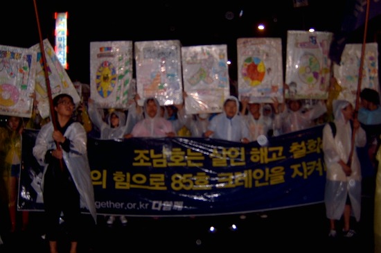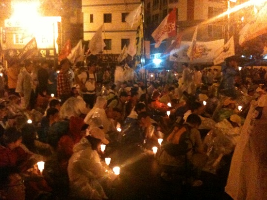 ▲ 앞 쪽의 참가자들이 경찰과 대치하고 있는 동안 뒤 쪽의 시민들은 촛불을 켜고 시위했다. ⓒ 안세희