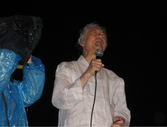 ▲ 백기완 통일문제연구소장이 연설을 위해 방송 차량 위에 올라섰다. 그가 김진숙을 꼭 살려내자고 외치자 시민들의 절박한 함성이 울려 퍼졌다. ⓒ 정혜아