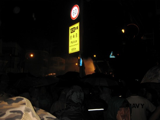 ▲ 대치 중인 경찰. 새벽 2시 30분 경 경찰은 시민들을 향해 최루액을 섞은 물대포로 강제 해산을 시도했다. ⓒ 안세희