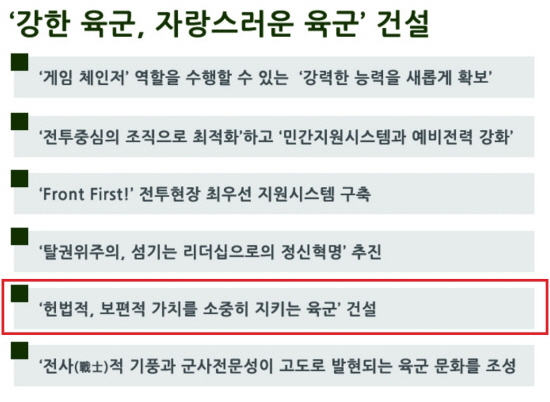 군 기강 확립과 전투력 보존은 군의 절대적 과제다. 평시에도 전투 수행능력을 길러 전쟁을 억제하고 국민의 안전과 편익을 도모해야 하기 때문이다. 육군을 지휘‧감독하는 참모총장의 지휘 의도가 ‘헌법적, 보편적 가치를 소중히 지키는 육군 건설’인 것도 이런 이유에서다. 그러나 성숙한 개인의 자기결정권에 징역 6개월의 죄를 묻는 곳 또한 대한민국 군대 인권의 현주소다.