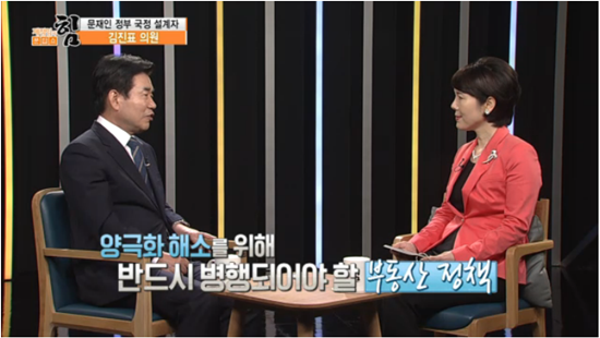 문재인 정부 출범 직후 국정기획자문위원장을 맡아 사실상 정권인수위원장 역할을 했던 김진표(70) 더불어민주당 의원이 21일 SBSCNBC <제정임의 문답쇼, 힘>에 출연, 주거 안정과 양극화 해소를 위해 부동산 보유세를 올려야 한다고 주장했다.