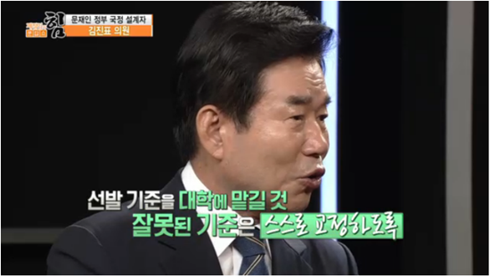 김 의원은 대학 입시와 관련, “서울대의 지역균형선발과 특기적성, 정시모집 출신자의 학업 성취도를 평가했더니 (지방인재를 우대하는) 지역균형선발의 성취도가 가장 높았다는 연구결과가 있다”며 단순히 지식을 묻는 방식 대신 창의력과 상상력을 갖춘 인재를 고루 뽑으려는 노력이 필요하다고 지적했다. 그는 또 변화하는 환경에 적응하는 인재를 길러내기 위해선 선발 기준을 대학에 맡겨 입시의 자율성을 높여야 한다고 주장했다.