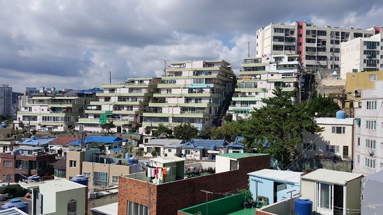 지난 여름 많은 관광객이 지게골을 찾았다. 5월부터 7월까지 KBS에서 방영한 드라마 <쌈, 마이웨이> 때문이다. 드라마 속 애라·동만·설희·주만이 사는 집 이름은 ‘남일빌라’. 드라마에서 그 빌라 주소는 서울 성동구 옥수동이지만 실제 촬영은 부산 남구 문현동 한성주택에서 이뤄졌다.