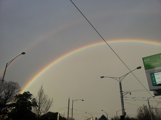 무지개가 때로는 쌍무지개로 걸릴 때가 있다. 빛이 두 번 굴절-반사되면서 생기는 것으로 2차 무지개는 ‘빨주노초파남보’가 아니라 ‘보남파초노주빨’로 보인다. 빛의 순서가 다를 뿐 혐오의 대상이 될 리 만무하다. 쌍무지개는 함께 뜨기에 더욱 아름답게 하늘을 수놓는다. 인간과 신의 화해를 상징하는 무지개와 성소수자의 인권을 상징하는 무지개도 함께 떠야 더 아름답다.