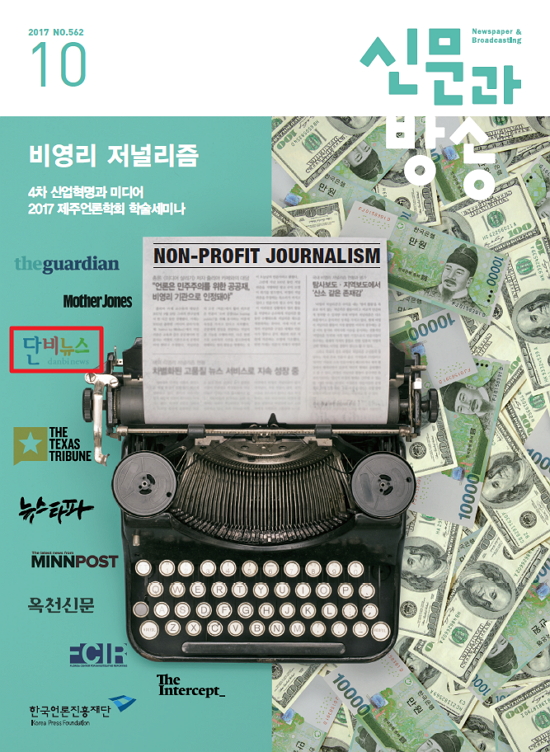 | 한국언론재단이 발간하는 저널인 <신문과방송>이 10월호에서 [비영리 저널리즘]을 커버 특집기사(논문)로 다루면서 국내 비영리 매체로는 <뉴스타파> <옥천신문>과 함께 <단비뉴스>를 비영리 저널리즘 모델의 대표주자로 꼽아 자세히 소개했습니다. 대진대 미디어커뮤니케이션학과 이정훈 교수는 '탐사보도·지역보도에서 산소 같은 존재감'이라는 제목의 글에서 '<단비뉴스>는 지역·농촌·청년 문제 등에 초점을 맞춘 대안매체로서 기능을 활발하게 수행하고 있다는 평가를 받는다'고 썼네요. 그는 또 '취재와 보도가 학기 프로젝트로 진행되면서 현장탐사를 병행한다'며 '기존 주류 매체보다 더 심층적이고 전문적인 이해와 통찰력을 담아내는 지역 이슈 관련 보도가 가능하게 된다'고 설명했습니다. 사실 다른 두 매체도 우리 저널리즘스쿨과는 밀접한 관련이 있습니다. 우리 스쿨 [탐사보도] 담당 교수이기도 한 김용진 대표가 이끄는 <뉴스타파>에는 우리 졸업생 셋(박경현·임종헌·김남범), <옥천신문>에는 장재원이 주력으로 뛰고 있습니다. 해외 비영리 매체를 소개한 다른 글에서는 영국 , 미국 등이 차별화한 고품질 뉴스 서비스로 지속 성장을 하고 있다고 평가했네요. 이봉수 교수 |