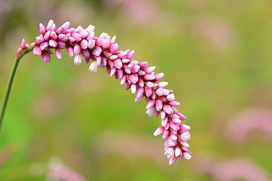 ’날 생각해 주세요.’ 개여뀌의 꽃말이다. 이삭 모양의 꽃대에 붉은 좁쌀 같은 꽃잎들이 우수수 달린 개여뀌를 가을에는 쉽게 볼 수 있다. 너무 흔해서 사람들은 잡초려니 하고 지나친다. 소마저도 먹지 않는 개여뀌는 자생력이 뛰어나 열악한 조건에서도 잘 자란다. 홀대에도 불구하고 개여뀌는 자세히 보면 참 아름답다. 좁쌀만 한 빨간 꽃봉오리가 때가 되면 부풀어 올라 자그마한 분홍빛 꽃잎을 바람에 나부끼는 개여뀌. 때 묻지 않은 순수함이 스며 나오는 꽃이다.