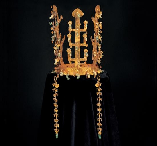 금관을 비롯한 신라 황금유물은 5~6세기 만든 ‘돌무지덧널무덤(積石木槨墳, 적석목곽분)’에서 집중적으로 발굴됐다. 이는 나무로 짠 덧널을 세운 다음 돌을 쌓고 흙으로 덮은 무덤 양식인데, 신라의 금관과 유물들이 도굴되지 않고 온전한 모습으로 발굴된 비결이다. 세월이 흐르면서 나무가 썩고 널이 무너져 돌이 무덤을 꽉 채우면서 도굴할 수 없는 상황에 발굴의 손길이 닿았다. 흥미로운 점은 이 ‘돌무지덧널무덤’ 양식 역시 몽골 초원에서 발굴되는 훈(흉노, 황금문화 숭배)족 무덤 나아가, 시베리아나 중앙 아시아에서에서 발굴되는 ‘스키타이족’ 무덤 형태와 똑같다. 신라 금관이 탄생한 것도, 도굴의 손길에서 벗어날 수 있었던 것도 초원의 길을 타고 전파된 스키타이 문화 덕분이라고 해도 과언이 아니다.