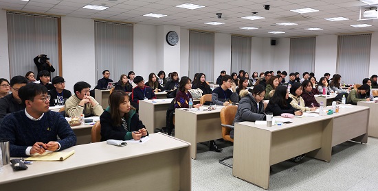 5일 소한 추위가 어김없이 제천을 덮쳤지만 세명대 저널리즘스쿨만은 1박2일간 열기 속에 휩싸였다. 과정이 빡빡하기로 ‘악명’ 높은 ‘언론인을 꿈꾸는 예비언론인 캠프’가 16번째로 개설됐기 때문이다. 전국 대학에서 선발된 56명 참가자들은 밤늦도록 거의 쉴새 없이 짜인 일정에도 흐트러짐 없이 강의에 집중하는 모습을 보였다.