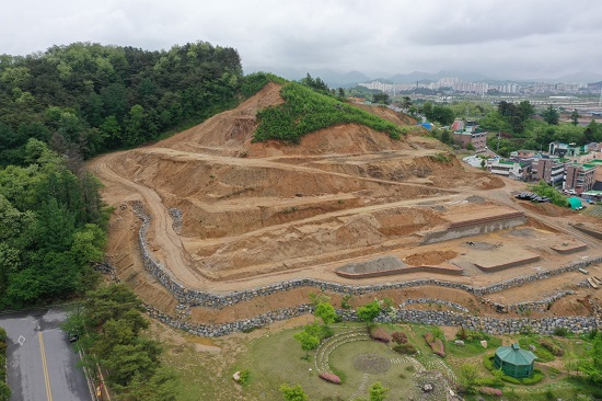 약 3년 전 주차장 용도로 산지전용 허가가 났지만 공사비 문제 등으로 1년 넘게 공사가 중단됐다. 이곳 마을에서 태어나 지금까지 살고 있다는 김육한(59) 씨는 “평생 같이 자라온 산을 깎아내는 거 보면 마음이 안 좋다”며 한숨을 쉬었다.