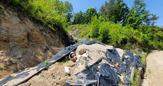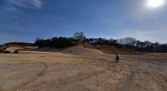 단양로와 맞닿아 있는 제천시 고명동 산 55-15 근처는 계획관리지역에 속하는 임야 지역이다. 단양로를 따라 이동하다 보면 산을 깎은 상태로 방치된 현장을 볼 수 있다. 중장비를 세워두는 주기장과 창고를 건설하겠다며 허가를 받아 공사를 시작했지만, 현재는 중단했다. 나무가 있던 자리에 포크레인과 같은 중장비와 건축 폐기물이 있다. 지난 17일 취재팀 전화 인터뷰에서 제천시청 관계자는 “주기장이랑 창고로 허가를 받은 곳이지만 코로나19 이후 자금이 모자라 공사가 멈춰 있는 상황”이라고 말했다.