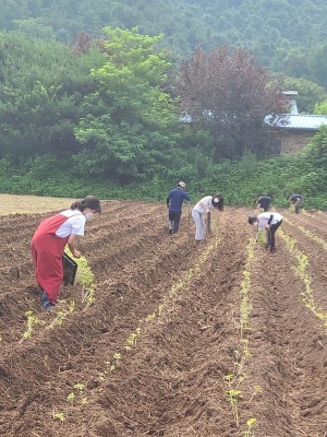 오후 2시 무렵 연수생들은 밀짚모자에 작업용 바지와 기다란 장화를 착용하고 들깨 밭으로 갔다. 김준권 대표가 밭 고랑에 구멍을 내면 연수생들은 뒤따라가며 들깨 모종을 세 그루씩 집어넣고 손으로 구멍을 메웠다. 30도에 이르는 날씨에 겨우 1시간 남짓 작업을 했는데도 연수생들은 온몸이 땀으로 뒤덮였다. 원혜덕 대표는 농장에서 수확한 양파를 저울에 달아 박스로 포장하는 작업도 시켰다. 연수생들은 흙이 낀 양파들을 박스 가득 담아 옮겼다. 농장 체험 뒤에는 평화나무농장 대표 상품인 유기농 통밀 치아바타와 소시지, 요거트를 맛보았다.