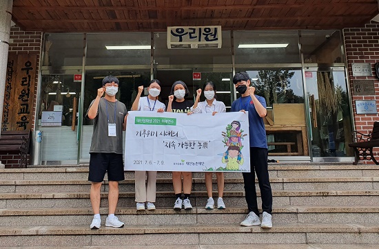 지난 6일 대산농촌재단 장학생 연수단 2조는 ‘기후위기 시대의 지속가능한 농(農) 무엇인가‘라는 질문을 안고 전라남도 보성군 벌교읍에 있는 우리원 농장으로 향했다. 이틀째 쏟아진 폭우로 차창 밖을 내다봐도 벼가 거의 보이지 않을 정도로 물에 잠긴 논들이 많았다.