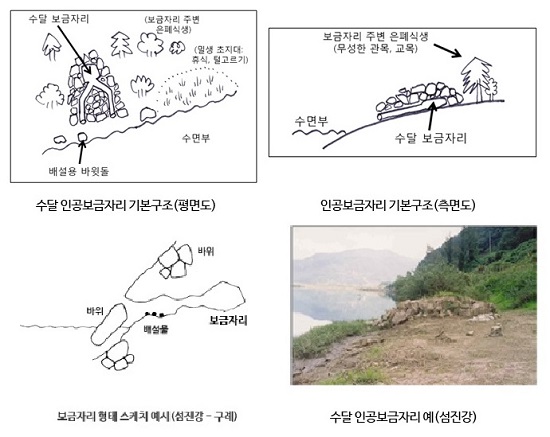 어경연 교수는 “은신처가 생겨야 수달이 마음 놓고 번식도 할 수 있다”고 말했다. 수달은 서식지 한 곳에 적어도 보금자리 두세 개가 필요하다. 환경에 민감해서 보금자리 근처에 인적이 느껴지면 쉽게 거처를 옮기기 때문이다. 그래서 인공 보금자리를 만들 때도 여러 위치에 은신처를 충분히 만들어줘야 한다. 어 교수는 “보금자리 안에 카메라를 설치해 새끼를 낳고 기르는 과정을 영상으로 확보하면 학술 가치도 높을 것”이라고 기대했다.