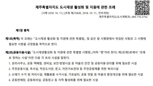 ‘도시재생 사후관리 조례’를 최초로 제정한 제주도의회