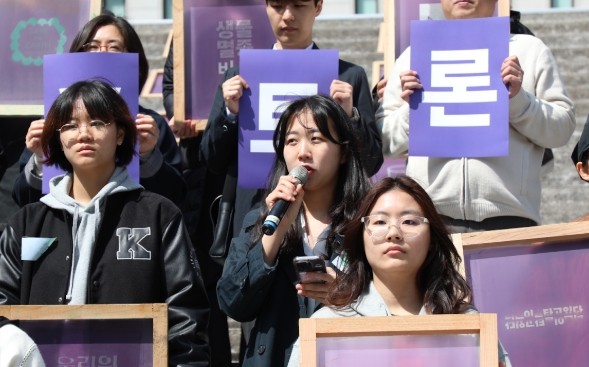 지난 15일 오전 서울 종로구 세종문화회관 앞에서 열린 '기후 단일의제 대선 텔레비전(TV) 토론회 촉구 기자회견'에서 이수아(21·숙명여대 법학과) 대학생기후행동 활동가가 말했다. 이 활동가는 헌법의 환경조항을 들어 “기후위기를 극복할 정치적 책임이 국가 지도자에게 있다”고 강조했다. 헌법 제35조 1항은 ‘모든 국민은 건강하고 쾌적한 환경에서 생활할 권리를 가지며, 국가와 국민은 환경보전을 위하여 노력하여야 한다’고 명시했다. 시민단체 기후정치바람과 기후위기비상행동이 공동 주최한 회견에는 학생, 시민단체 활동가 등 60여 명이 참여했다.