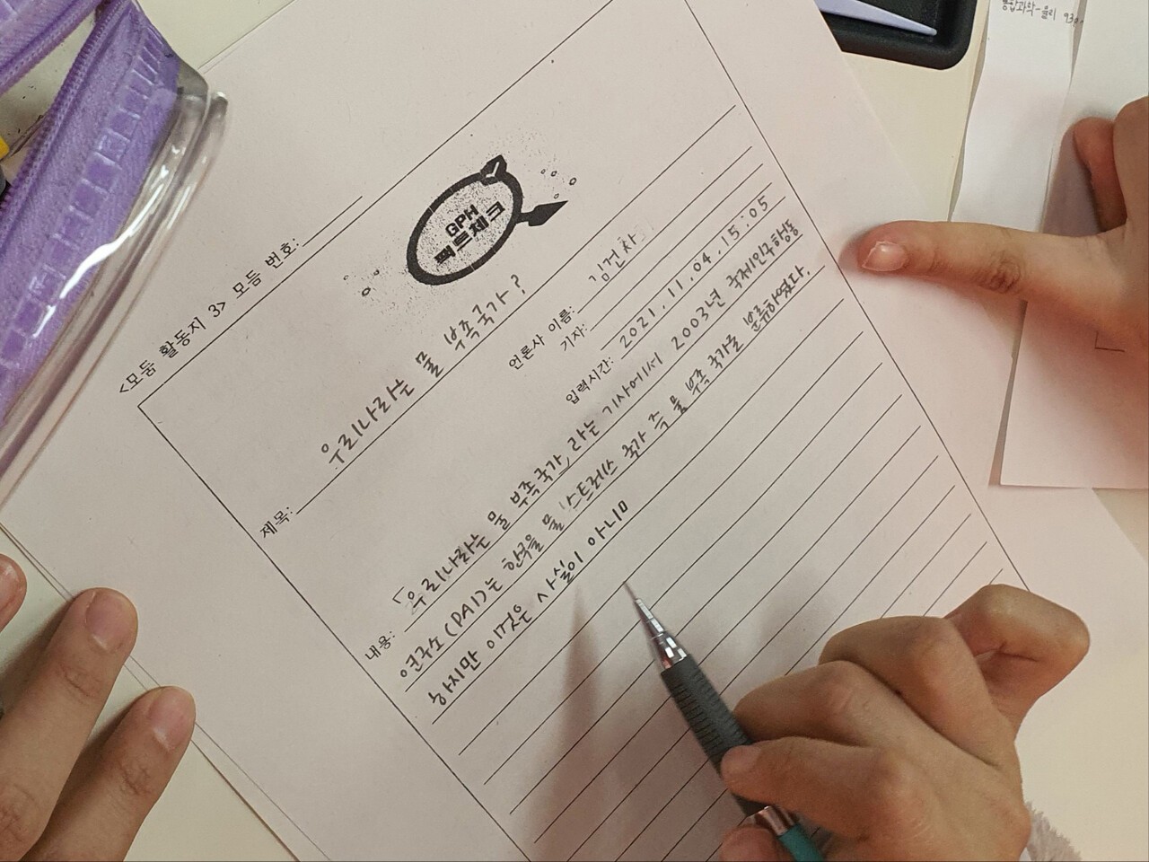팩트체크 과정을 거쳐본 학생들은 “SNS에서 정보를 접할 때 정보의 출처는 어딘지, 혹시 허위정보는 아닐지 질문하고, 앞으로 정보를 카톡에 공유할 때 한번 더 고민해 보겠다”라고 느낀 점을 발표했다.
